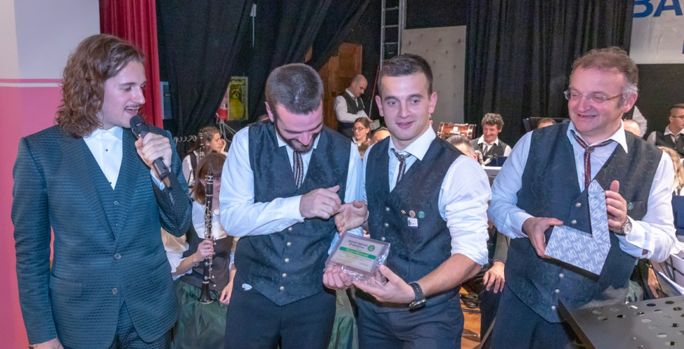 Nicola Benaglia dirige un brano che gli calza a pennello, la Banda attentamente lo segue, torna alla mente Vittorino Bonapace in un assolo al sax...